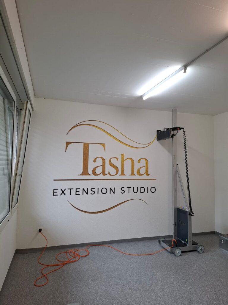 Erstelle professionelle Beschriftungen und Leitsysteme direkt auf die Wand - innen und aussen.